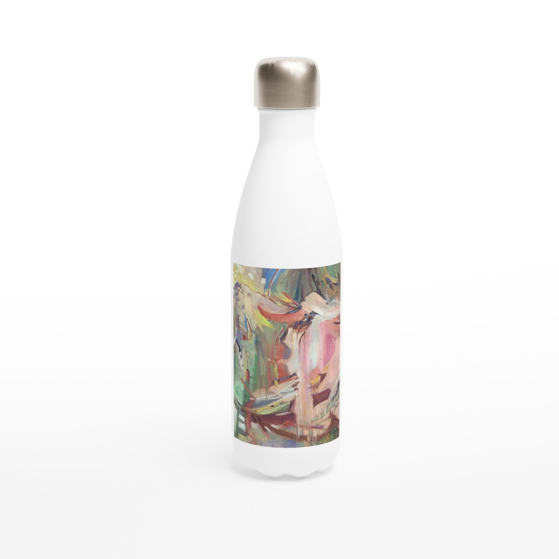 17oz White Stainless Steel Bottle with 'All Seasons' Abstract Artwork by American Artist Barbara Cleary