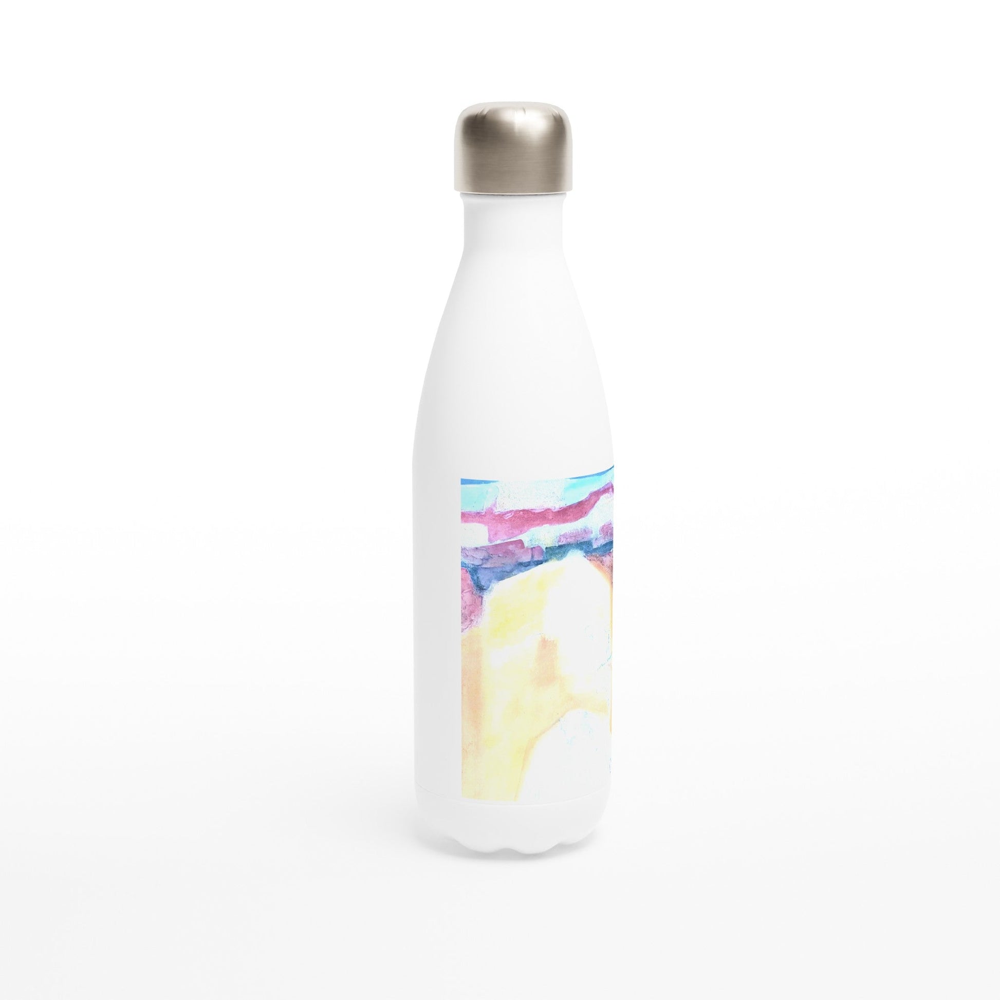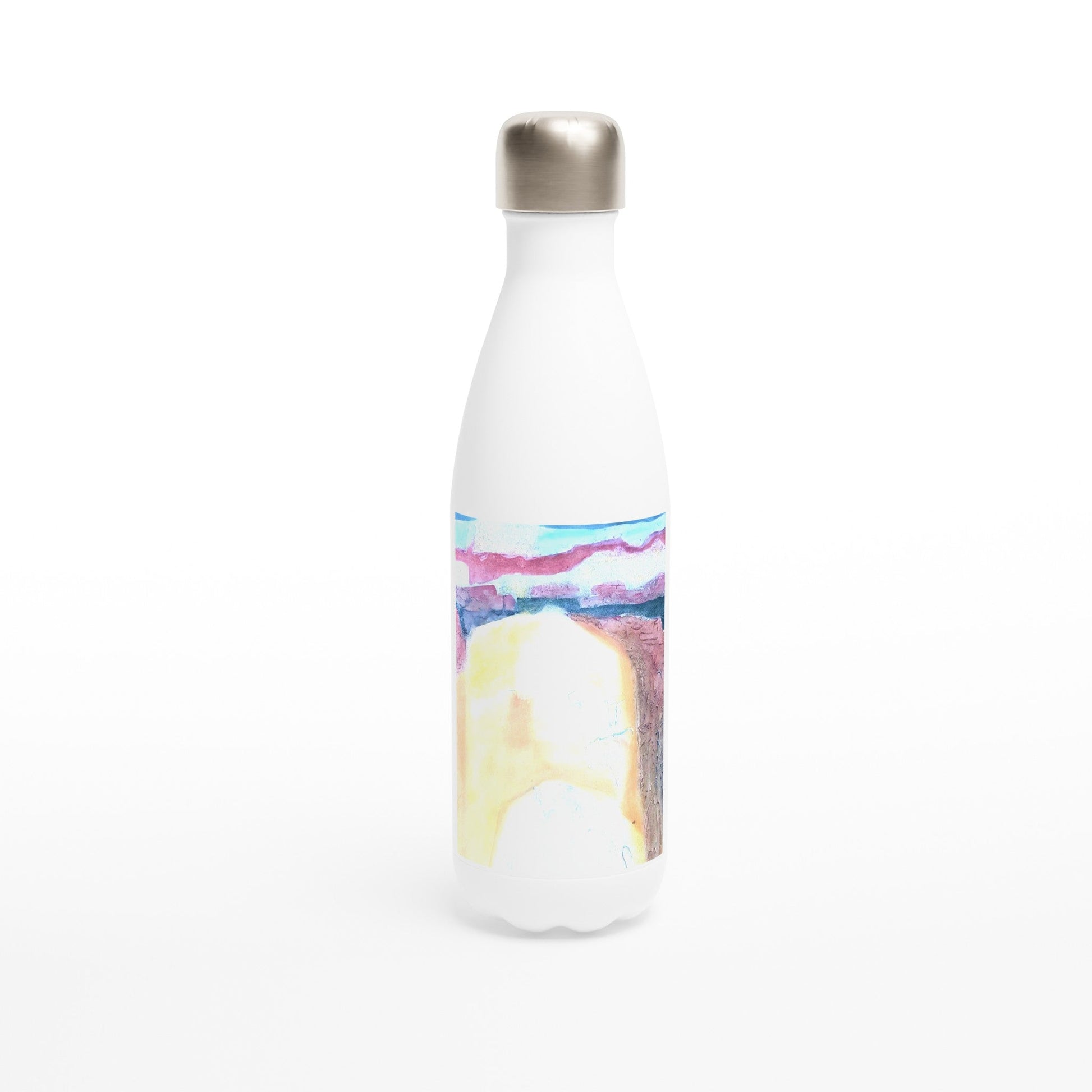 17oz White Stainless Steel Bottle with 'Southwest Mixed Media' Abstract Artwork by American Artist Barbara Cleary